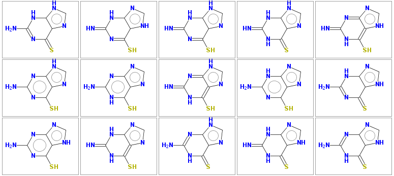 java -jar mib.jar -smi 'Nc2nc1nc[nH]c1c(=S)[nH]2' -tautomers -list > tautomers.smi